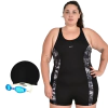 Combo Malla Short Mujer Talle Especial Safit 6202 + Antiparras + Gorro Tela