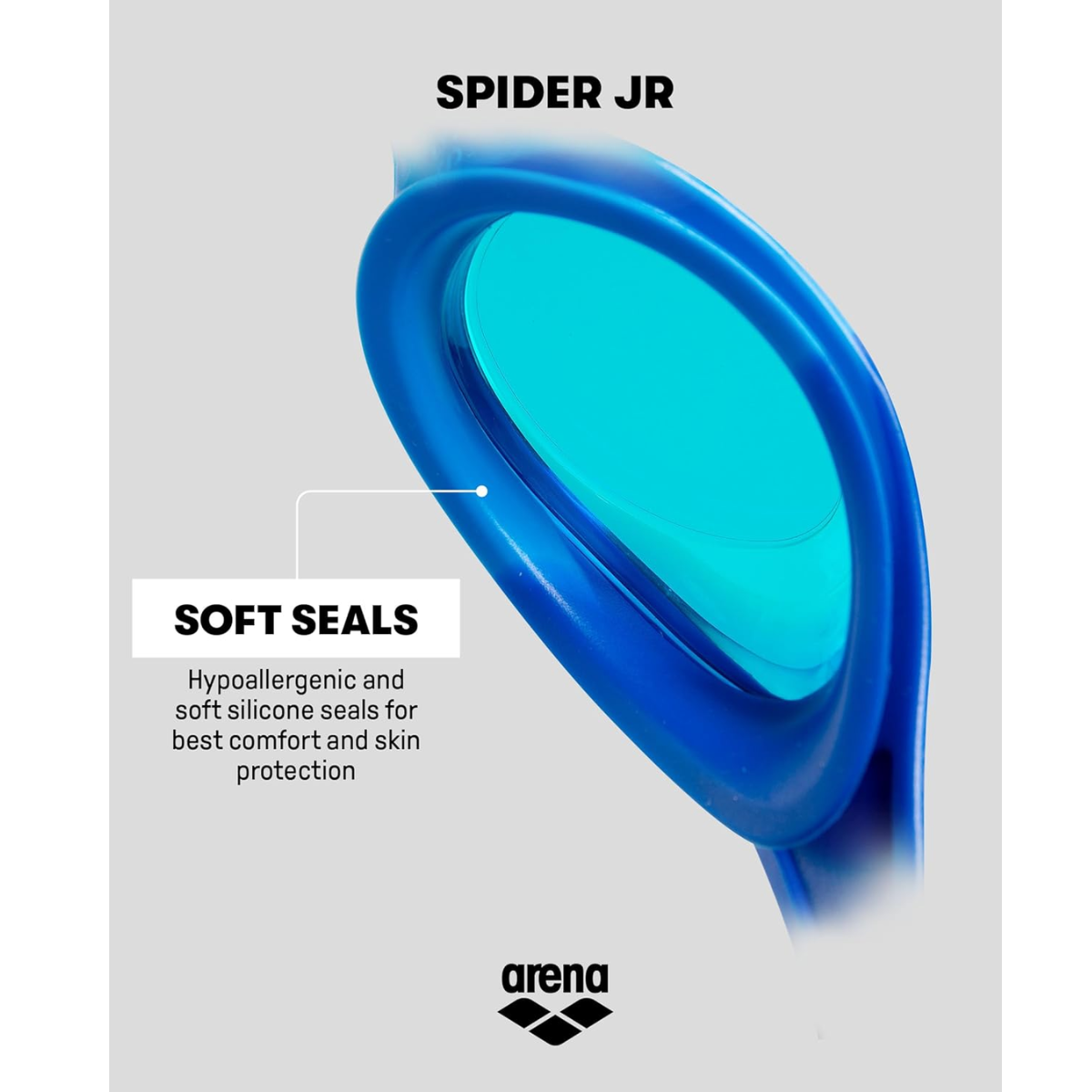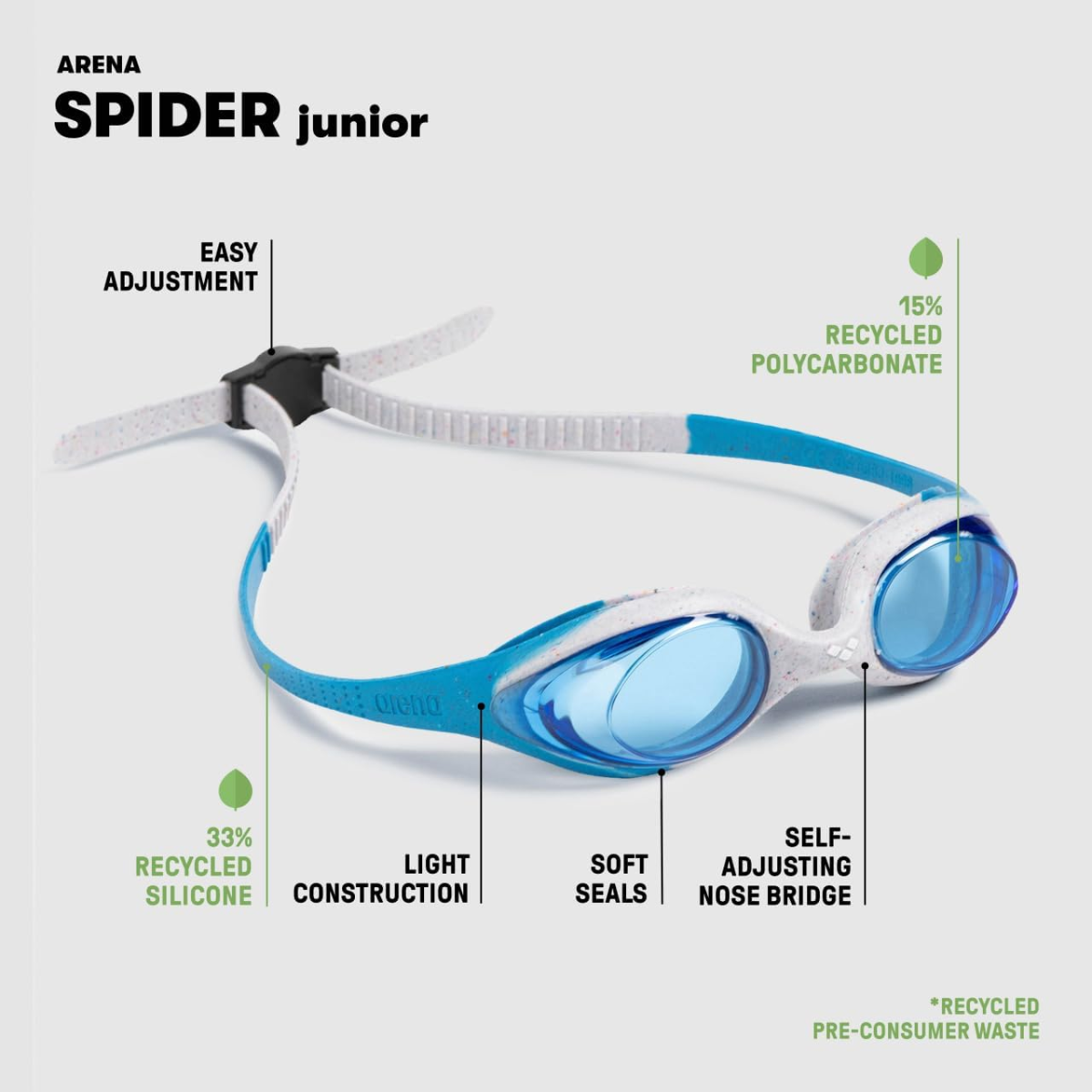 Las antiparras arena Spider Junior cuentan con lentes rígidos de policarbonato, duraderos y resistentes al impacto con una claridad óptica superior en combinación con juntas de silicona blanda hipoalergénica para una mayor suavidad, resiliencia y comodidad. Su diseño bicolor es divertido y cool para combinarlo con tu outfit de piscina.