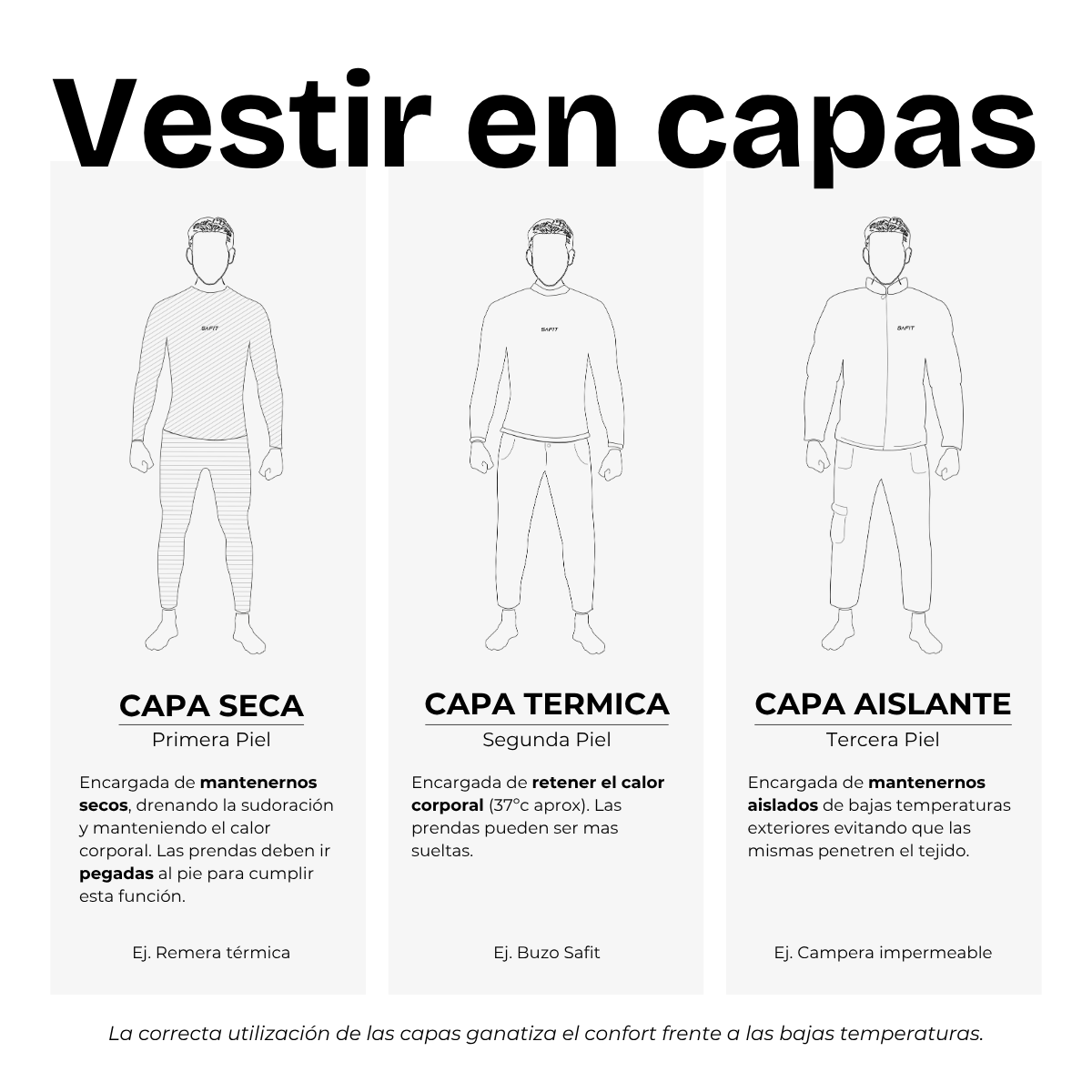 Buzo con cuello micropolar. Recomendado para usar sobre una remera térmica primera piel.