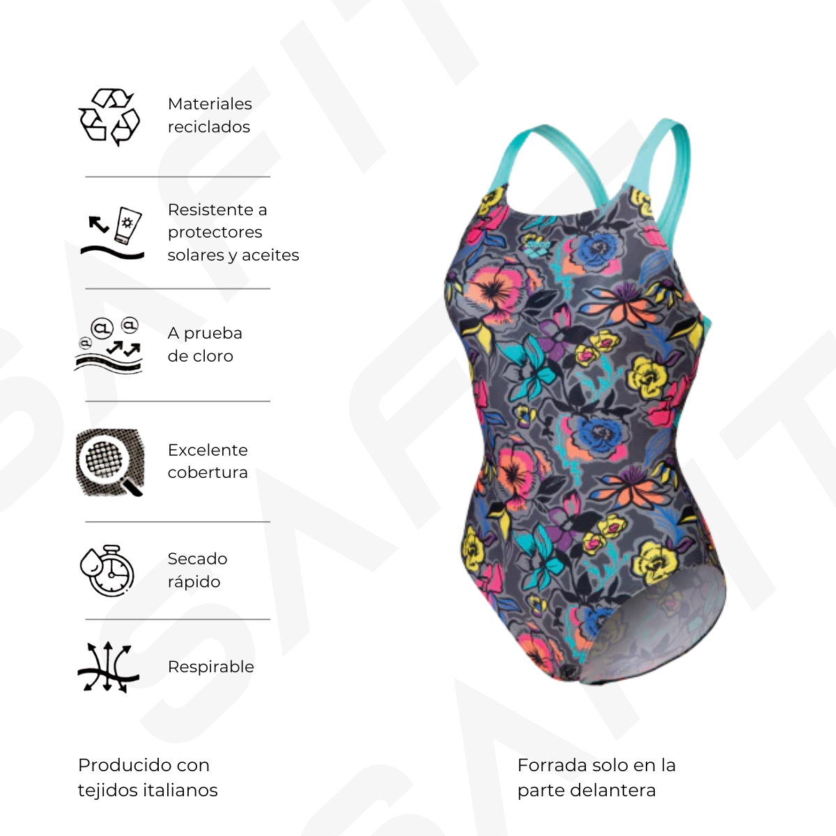 Dale color a tus entrenamientos con el novedoso traje de baño arena Vivid Repeat Pro. Con un llamativo estampado floral y breteles en contraste, esta malla de una pieza combina estilo vibrante y rendimiento duradero. Está confeccionada con el tejido Maxlife Eco.
