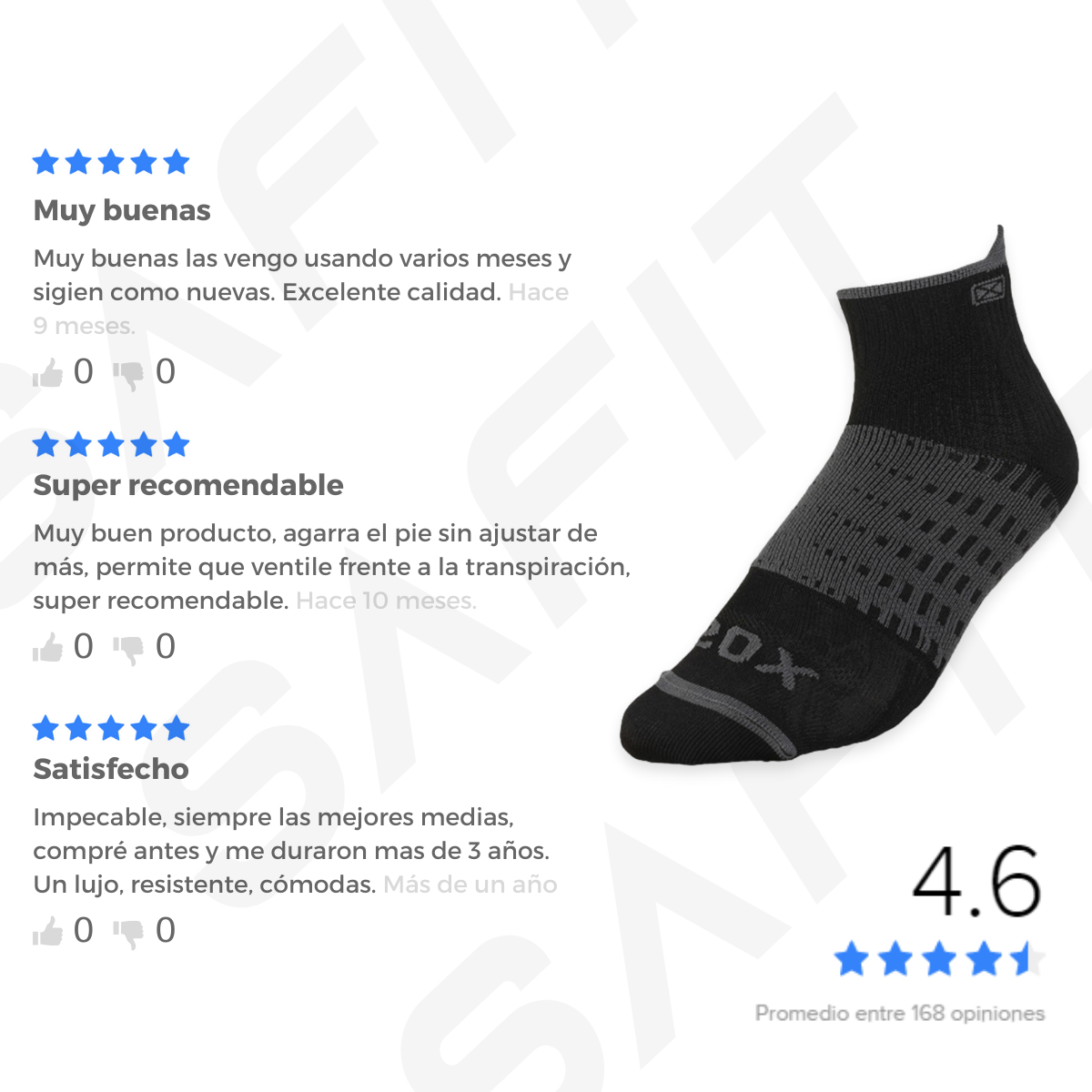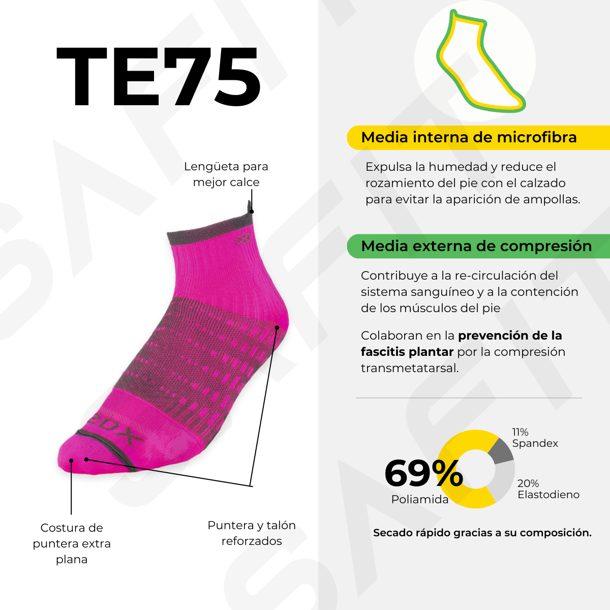 - Media externa con tecnología de compresión para contribuir a la recirculación sanguínea y contención de los músculos del pie