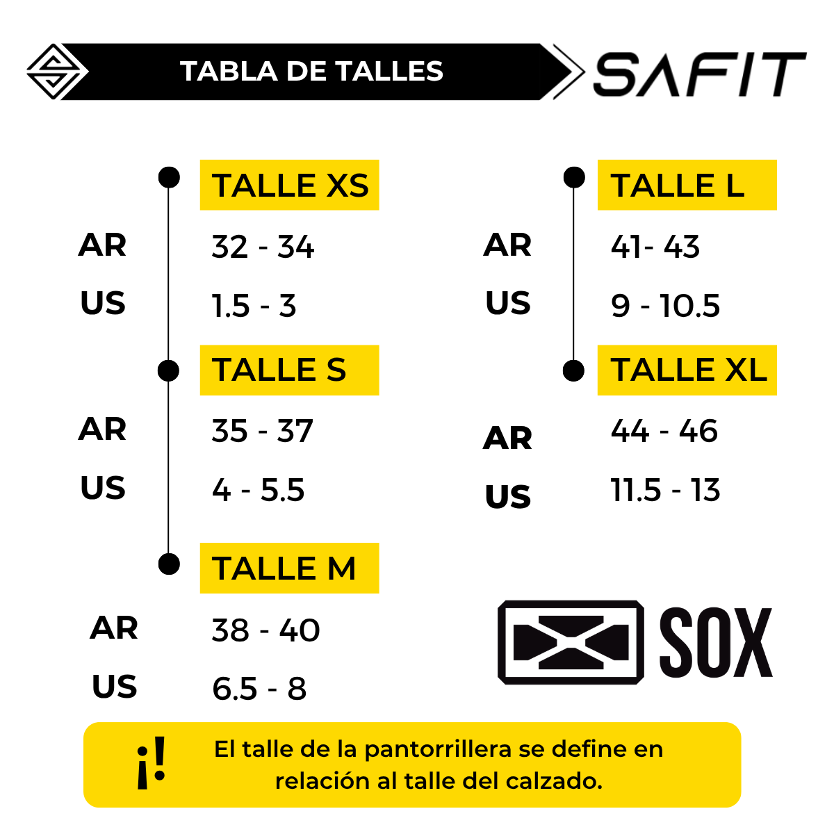 - Talle: el talle de la pantorrillera se define en relación al talle del calzado habitual
