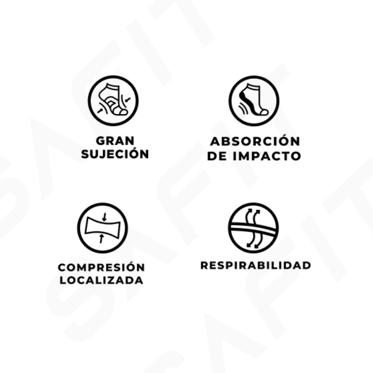 Ofrecen compresión focalizada en las áreas del pie donde más se necesita, proporcionando soporte adicional durante actividades intensas.