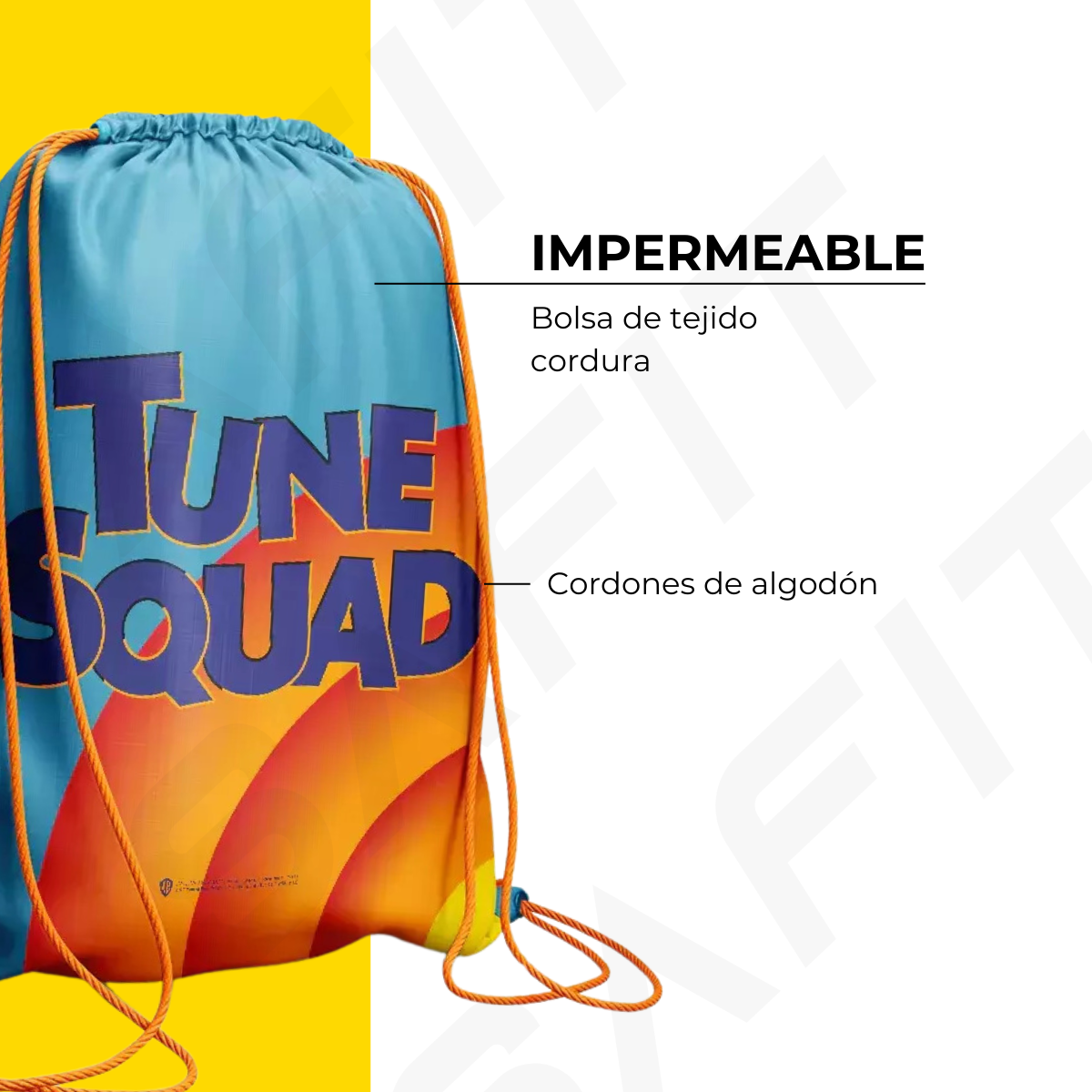 Lleva contigo el poder y la valentía de Space Jam con nuestra mochila multiusos, un producto de licencia oficial de Warner Bros®. Confeccionada en cordura impermeable y cordones de algodón, esta mochila es la elección perfecta para guardar todas tus cosas y estar listo en segundos, práctica para ir a la escuela, al gimnasio, a la piscina o a la playa.