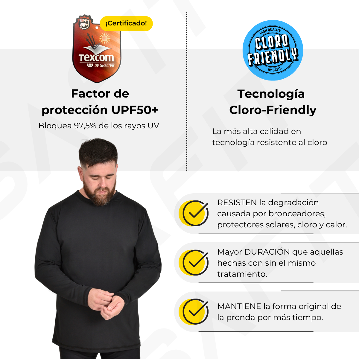 El tejido Lycra está especialmente diseñado para obtener un excepcional poder de recuperación, ajuste y libertad de movimiento.