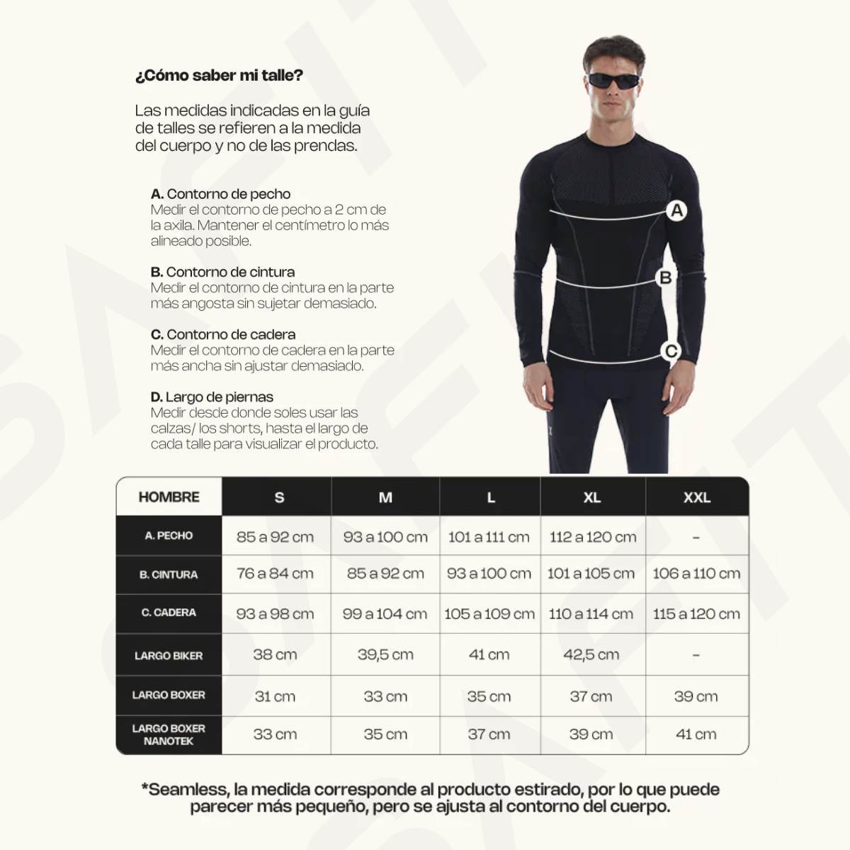 Tecnología Seamless (sin costuras): Confeccionada sin costuras para evitar rozaduras y mejorar el confort, ideal para un uso prolongado debajo de otras prendas.
