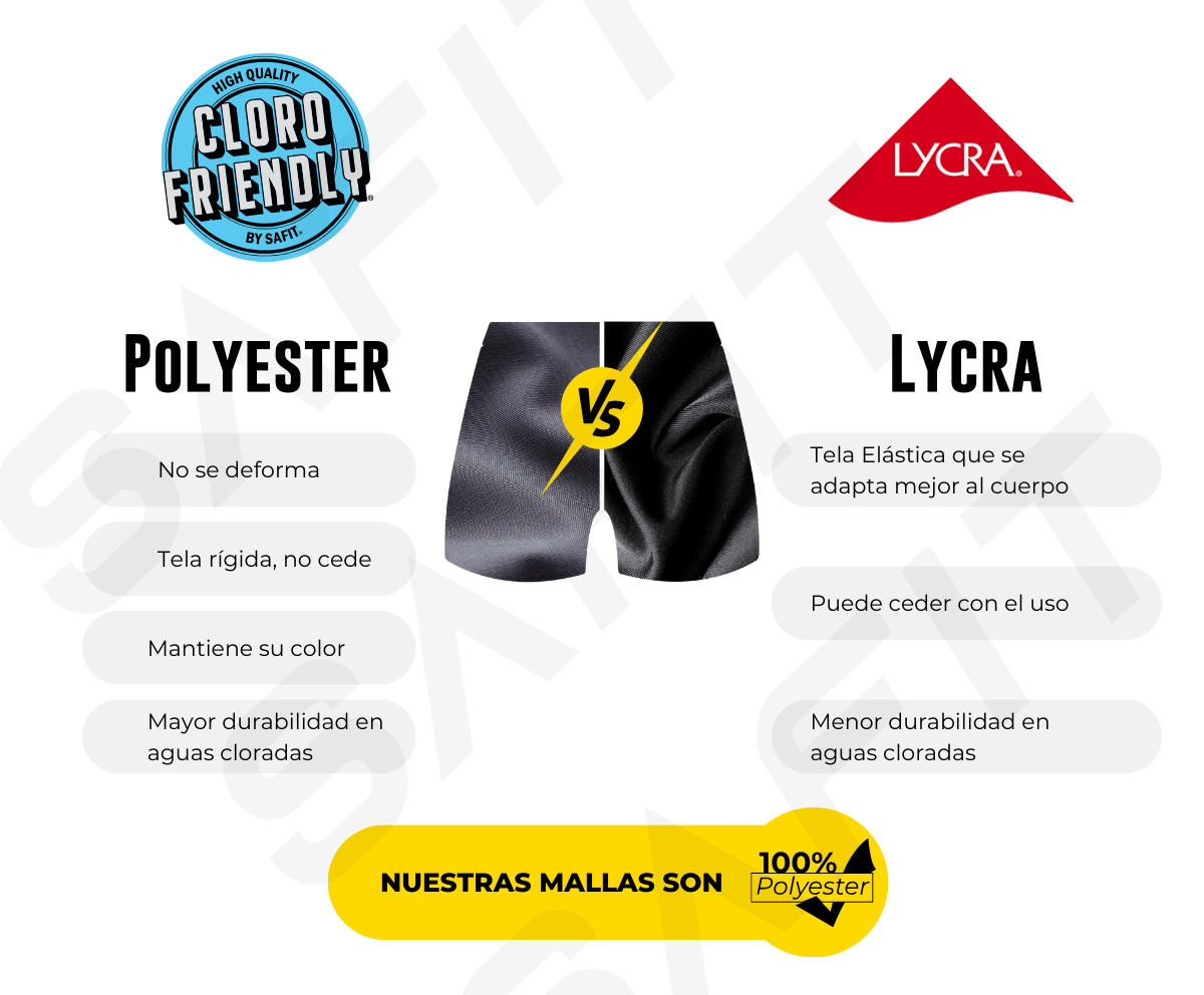 Las Mallas que son Anticloro persisten por mucho mas tiempo, gracias a su alta durabilidad y calidad del producto, lo que garantiza la Resistencia de la prenda, evitando el desgaste del tejido por parte de los aditivos químicos que se agregan a las piletas, y permitiendo que el nadador obtenga un accesorio cómodo y seguro.